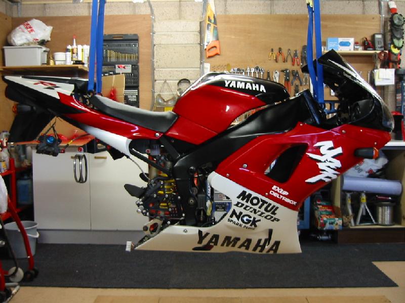 Monday 1/4/02 Swing arm, Ohlins forks, R7/1 carbon body work all ordered from East Coast Superbikes.